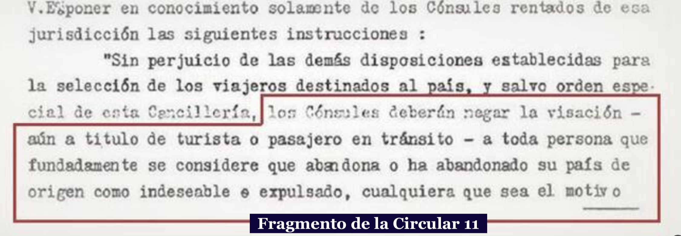 Pero el colmo de la hipocresía fue que en los mismos días en que transcurría la conferencia, concretamente el 12 de julio, el canciller argentino José María Cantilo, envió a sus consulados y embajadas europeas la conocida como “Circular 11”, una directiva secreta que prohibía dar visas y permitir la emigración de los “indeseables”. Otra vez no se decía “judíos”, no hacia falta, cualquiera entendía a quiénes se refería.